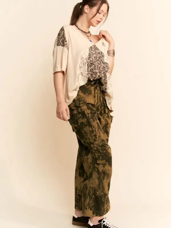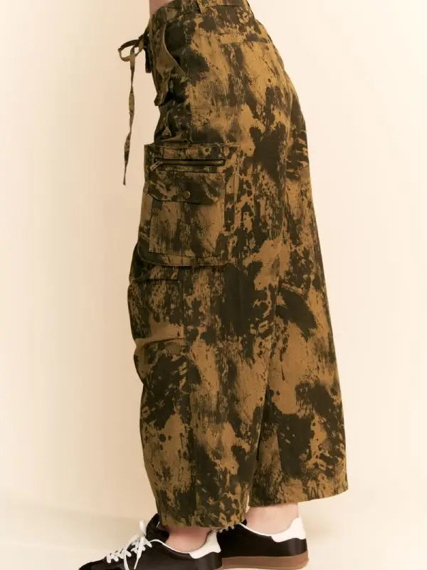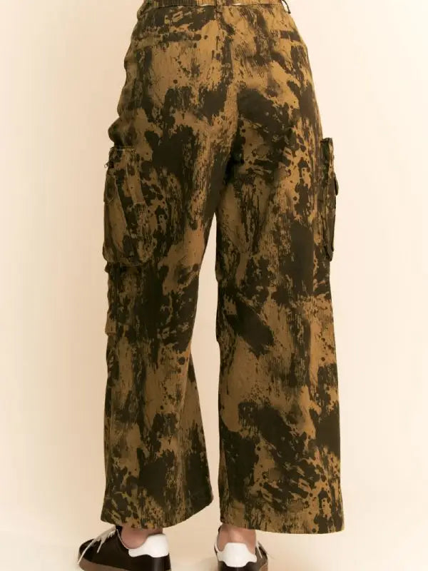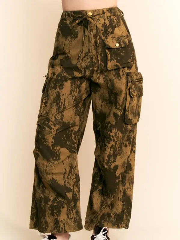 Make a bold statement with these eye-catching paint-splash cargo pants. Designed for effortless streetwear appeal, this standout piece combines utility details with artistic, lived-in character. The wide-leg silhouette offers a relaxed, fashion-forward fit, while the adjustable drawstring waist and hem let you customize your look with ease.